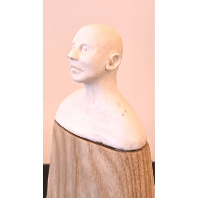 Individually sculptured bust in porcelain with carved wood body. Height 210mm
